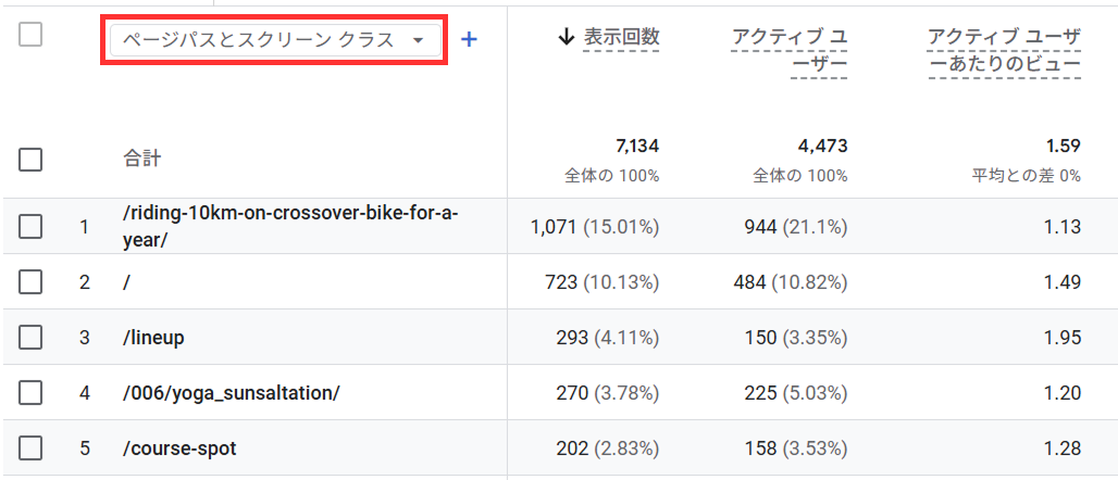 - ディメンションが「ページパスとスクリーンクラス」になっていることを確認